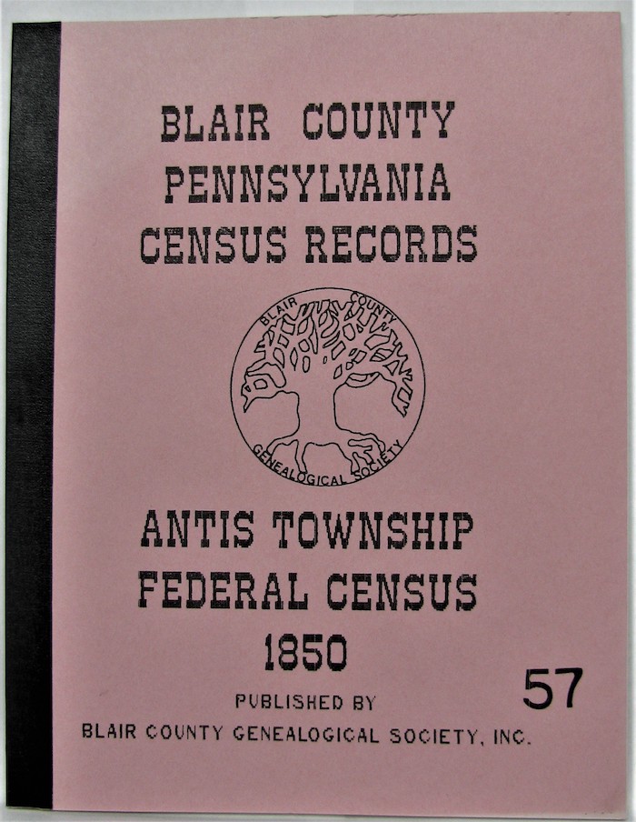 1850 Antis Township Census Records, by Billie Danemark & Arlene O’Keiff Rainelli. 76 pages.